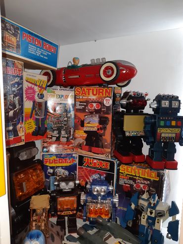 Tin toys from 50s to 70s, battery operated toys. Planetary Robots, Astronauts, Space Robot, Tin toy cars, Trains, Tanks and more!